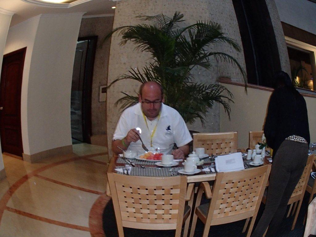 Diego Lacunza, Director del coro Mpal de Puerto Madryn, desayunando el 29 de Marzo